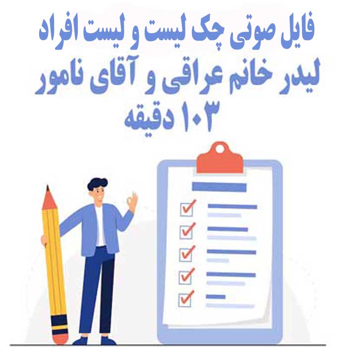 فایل صوتی چک لیست و لیست افراد از دو لیدر خانم عراقی و آقای نامور | +103 دقیقه فایل صوتی چک لیست و لیست افراد از دو لیدر خانم عراقی و آقای نامور | +103 دقیقه